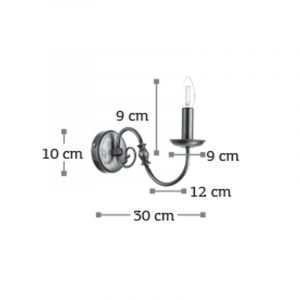 Πρόκειται για ένα επιτοίχιο φωτιστικό από οξυντέ μέταλλο με έναν λαμπτήρα. Κατάλληλο για διακόσμηση κλασσικών εσωτερικών χώρων. Διατίθεται και λευκό υφασμάτινο καπέλο για πιο απαλό φωτισμό το οποίο θα πρέπει να ζητηθεί επιπλέον.