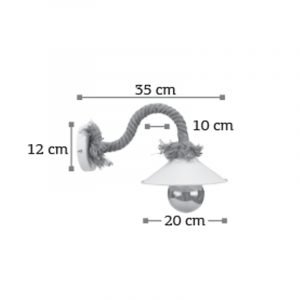 Πρόκειται για ένα επιτοίχιο φωτιστικό κατασκευασμένο από καφέ σχοινί και λευκό μέταλλο. Τοποθετείται σε οποιονδήποτε εσωτερικό χώρο, επιτρέποντας τη διάχυση του φωτός σε αυτόν.
