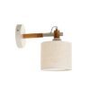 Πρόκειται για ένα μίνιμαλ επιτοίχιο φωτιστικό κατασκευασμένο από λευκό μέταλλο και ξύλινους βραχίονες οι οποίοι κουνιούνται για να καταλάβουν την ιδανική θέση για τον κάθε χώρο.