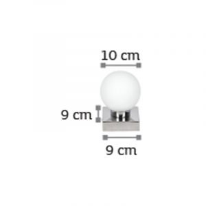 Πρόκειται για ένα επιτοίχιο φωτιστικό από χρώμιο μέταλλο λευκή οπαλίνα και έναν λαμπτήρα. Η μίνιμαλ σχεδίαση και το σχήμα του το τοποθετεί σε μοντέρνους χώρους εσωτερικής διακόσμησης. Τοποθετείται και ως φωτιστικό οροφής!