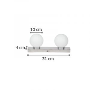 Πρόκειται για ένα επιτοίχιο φωτιστικό από χρώμιο μέταλλο λευκή οπαλίνα και δύο λαμπτήρες. Η μίνιμαλ σχεδίαση και το σχήμα του το τοποθετεί σε μοντέρνους χώρους εσωτερικής διακόσμησης. Τοποθετείται και ως φωτιστικό οροφής!