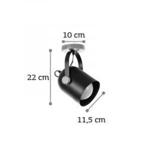 Πρόκειται για ένα σποτ κατασκευασμένο από μαύρο μέταλλο και ξύλινες λεπτομέρειες. Η βάση του είναι επίσης κατασκευασμένη από ξύλο. Το μεταλλικό καπάκι του κινείται για να προσαρμοστεί ιδανικά σε οποιονδήποτε εσωτερικό χώρο. Μπορεί να τοποθετηθεί είτε στην οροφή είτε στον τοίχο.