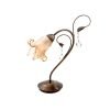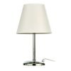 Πρόκειται για ένα μεταλλικό επιτραπέζιο φωτιστικό σε απόχρωση μπεζ πατίνας. Το υφασμάτινο καπέλο το συνοδεύει συμπληρώνοντας τη μίνιμαλ σχεδίασή του.