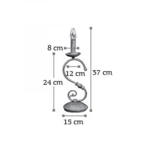 Πρόκειται για ένα επιτραπέζιο φωτιστικό από μέταλλο σε λευκή πατίνα. Κατάλληλο για διακόσμηση κλασσικών εσωτερικών χώρων. Διατίθεται και λευκό υφασμάτινο καπέλο για πιο απαλό φωτισμό το οποίο θα πρέπει να ζητηθεί επιπλέον.