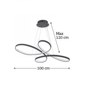 Πρόκειται για ένα μαύρο κρεμαστό φωτιστικό με κυκλική σχεδίαση κατασκευασμένο από αλουμίνιο. Η λευκή ακρυλική του επιφάνεια καλύπτει τον led φωτισμό θερμής απόχρωσης. Η ανάρτησή του είναι ρυθμιζόμενη ώστε να προσαρμόζεται στον κάθε χώρο.