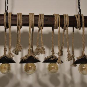 Κρεμαστό φωτιστικό από κούτσουρο με σχοινιά τετράφωτο, Ε27 λαμπτήρας.