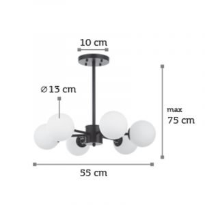 Κρεμαστό φωτιστικό από μαύρο μέταλλο και λευκή οπαλίνα, G9 λαμπτήρες.