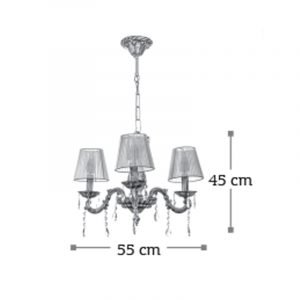 Κρεμαστό φωτιστικό από μέταλλο σε μπεζ πατίνα και κρύσταλλα, Ε14 λαμπτήρες.