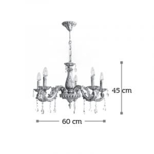 Κρεμαστό φωτιστικό από μέταλλο σε μπεζ πατίνα και κρύσταλλα, Ε14 λαμπτήρες.
