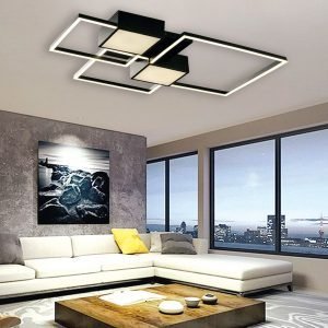 Πρόκειται για ένα μαύρο φωτιστικό οροφής με τετράγωνη σχεδίαση κατασκευασμένο από αλουμίνιο. Η λευκή ακρυλική του επιφάνεια καλύπτει τον led φωτισμό θερμής απόχρωσης. Η γεωμετρική του σχεδίαση ταιριάζει σε όλους τους μοντέρνους χώρους.