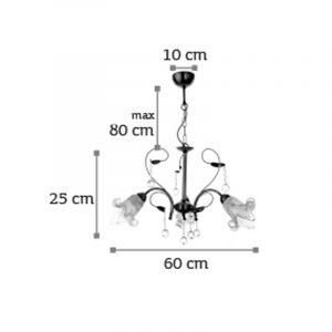 Κρεμαστό φωτιστικό από οξυντέ μέταλλο κρύσταλλα και μελί γυαλί, Ε14 λαμπτήρες.