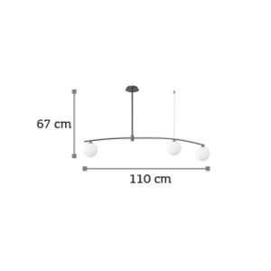 Πρόκειται για ένα μαύρο μεταλλικό φωτιστικό με λευκή οπαλίνα στο τελείωμα και τρεις λαμπτήρες. Η μίνιμαλ σχεδίασή του το τοποθετεί ιδανικά σε οποιονδήποτε μοντέρνο εσωτερικό χώρο.