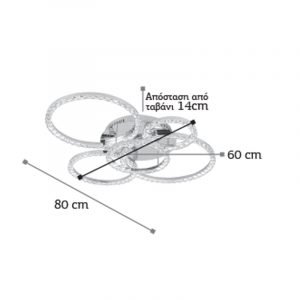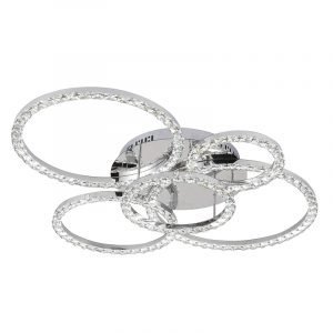 Πρόκειται για ένα χρώμιο μεταλλικό φωτιστικό οροφής κυκλικής σχεδίασης. Τα κρύσταλλα προσθέτουν λάμψη και αντανακλούν τον φωτισμό φυσικού χρώματος.